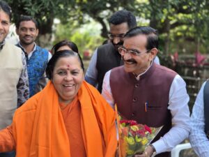 भारतीय जनता पार्टी के पूर्व प्रदेश अध्यक्ष एवं खजुराहो सांसद विष्णु दत्त शर्मा को जैसे ही उमा भारती के पन्ना में मौजूद होने की जानकारी लगी वह एक कार्यक्रम के बाद उनसे मिलने पहुंचे और सर्किट हाउस में पहुंचकर उमा भारती का सम्मान किया और पन्ना के विकास के मुद्दे को लेकर बातचीत की
